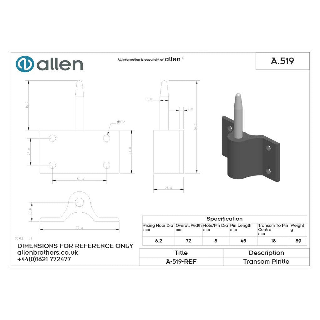 Allen Four Hole Transom Pintle With 8mm Pin A.519