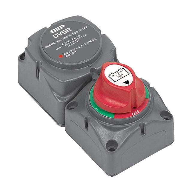 Pre-wired module combining 113557 Mini Battery Selector Switch and a dual sensing Voltage Sensitive Relay. With the selector switch in position 1, it becomes the sensing battery for the VSR. When the engine is first started the relay is open and remains open until the selected battery reaches a preset 13.4 volt. The relay closes at the rated voltage providing charge to both batteries. When the selected battery voltage drops below 12.8 volt, the DVSR disengages, separating the batteries and ensuring that battery 1 is not discharged by house loads. When the selector switch is in position 2, this becomes the sensing battery and the reciprocal occurs. When the selector switch is in the both position the DVSR is inactive and the charge and load is distributed evenly between the batteries. With this system the loads are run off the same battery as the engine starting battery.