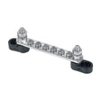 Tin plated brass busbars with insulated mounting bases. Mounting holes are recessed to avoid accidental shorts. Polarity colour coded covers are available to meet ABYC standards.