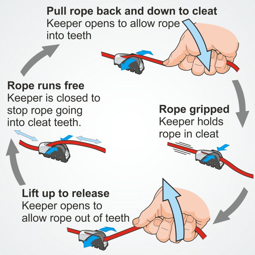 These benefits mean that Clamcleat® rope cleats can now be used on control lines that are adjusted frequently. When a halyard or control line is released from a cleat fitted with a Keeper, the Keeper will stop it falling back into the cleat and re-cleating, for example when dropping a spinnaker during a race or the mainsail when unrigging ashore. A patent has been applied for the innovative Keeper.