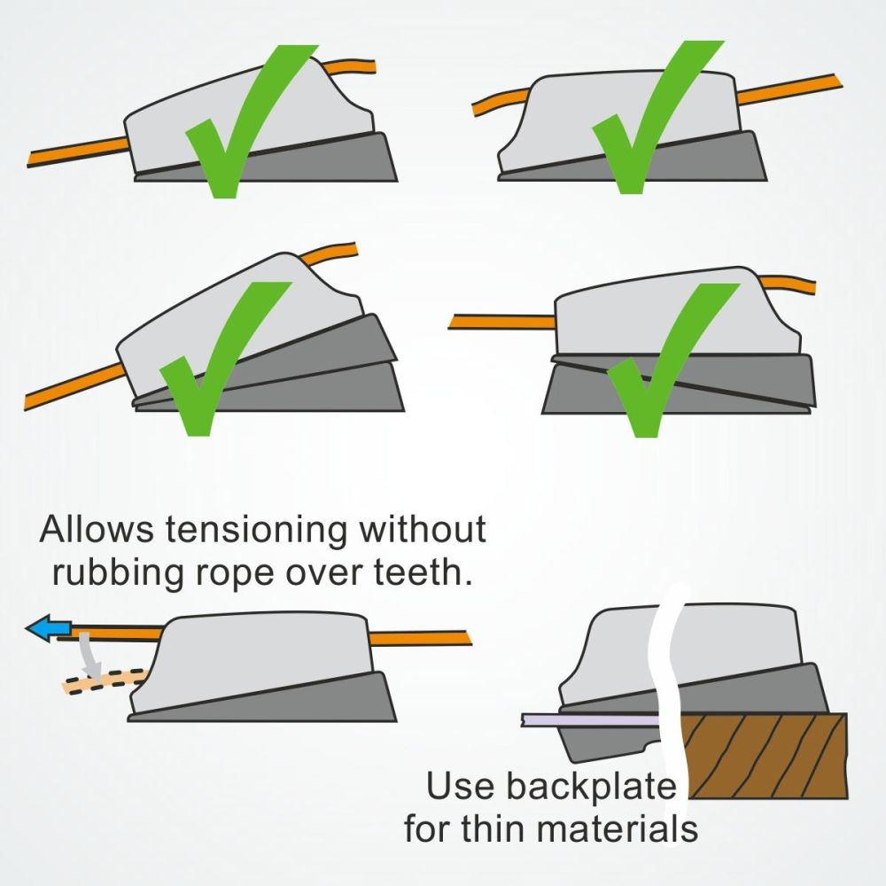 The Clamcleat® CL823 Tapered Pad allows correct rope/cleating alignment. Backplate provides under deck support when bolting through thin sections and is supplied with every pad.