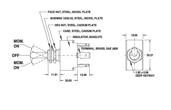 Cole Hersee Toggle Switch MOM On/Off/MOM On DPDT Rated 25A 12V
