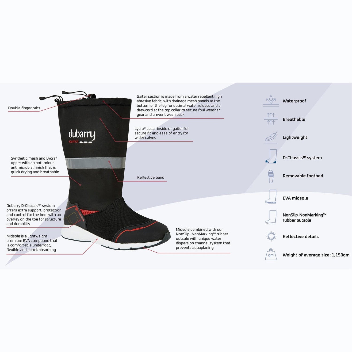 - Dubarry’s unique finger pull tape incorporates the distinctive port and starboard flash detail, they run the full length of the boot and are caught into the sole for ease of fit with maximum security