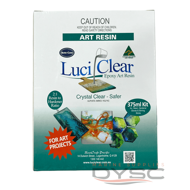 LuciClear Artists Resin  is formulated specially for epoxy resin art. LuciClear Artists Resin is an easy to use, medium viscosity, fast curing, self levelling epoxy system.  Your art piece will have a crystal clear high gloss glass like finish.  It can be applied over many surfaces. Wood, canvas (may need to be sealed first), paper and cardboard (may need to be sealed first), masonry and concrete, acrylic artist paint (may need to be flooded to ensure no surface disruption) and glass. (Certain plastics are definitely unsuitable, polyethylene, polypropylene and teflon. other plastics may be OK, especially if rough sanded first .) Lacing, cells or multilayer colour effects are easy to do, the formulation has been optimised to minimise pigment dispersion prior to the resin gelling.  Bubble free results are easy.