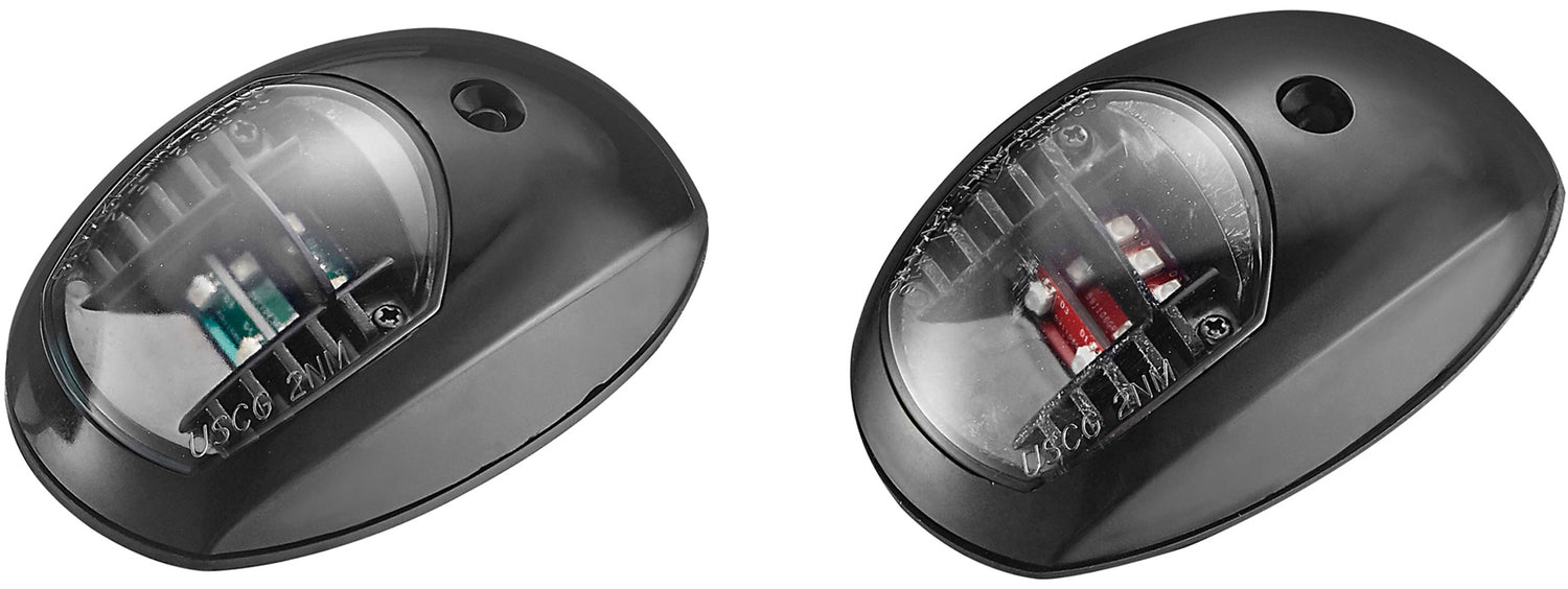 Our most popular LED Port & Starboard lights. Fully approved USCG IMO Colregs as a 2 mile light. Certifi ed for boats up to 20 metres, meets ABYC A-16 and NMMA standards. Side mounting port & starboard navigation lights with bright, long-life 12 volt LEDs in a sealed waterproof housing. Supplied with rubber mounting gasket. Length: 90mm Width: 55mm Height: 35mm Sold in pairs. Clamshell packed. Suitable for 12 volt only.