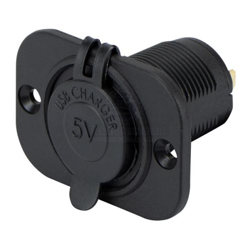 | • Single panel mount (able to remove socket from panel to use in a flush mount round installation). • Flame retardant nylon glass fibre reinforced and UV stabilised panel. • Supplied with water-resistant rubber cap (IP65). • Short circuit / overheat protection. • 6.4mm quick connect terminals. • Mounting panel dimensions: W60 x H42.5 x D5.5mm. • Cut Out Dia.: 29mm (per socket). • Mounting Hole Centres: W48mm. • Mounting hardware included. Dual USB Charger • Input Voltage: 12/24V • Compatible with all smartphones and devices that use a Dual USB-A/USBC charging port. |