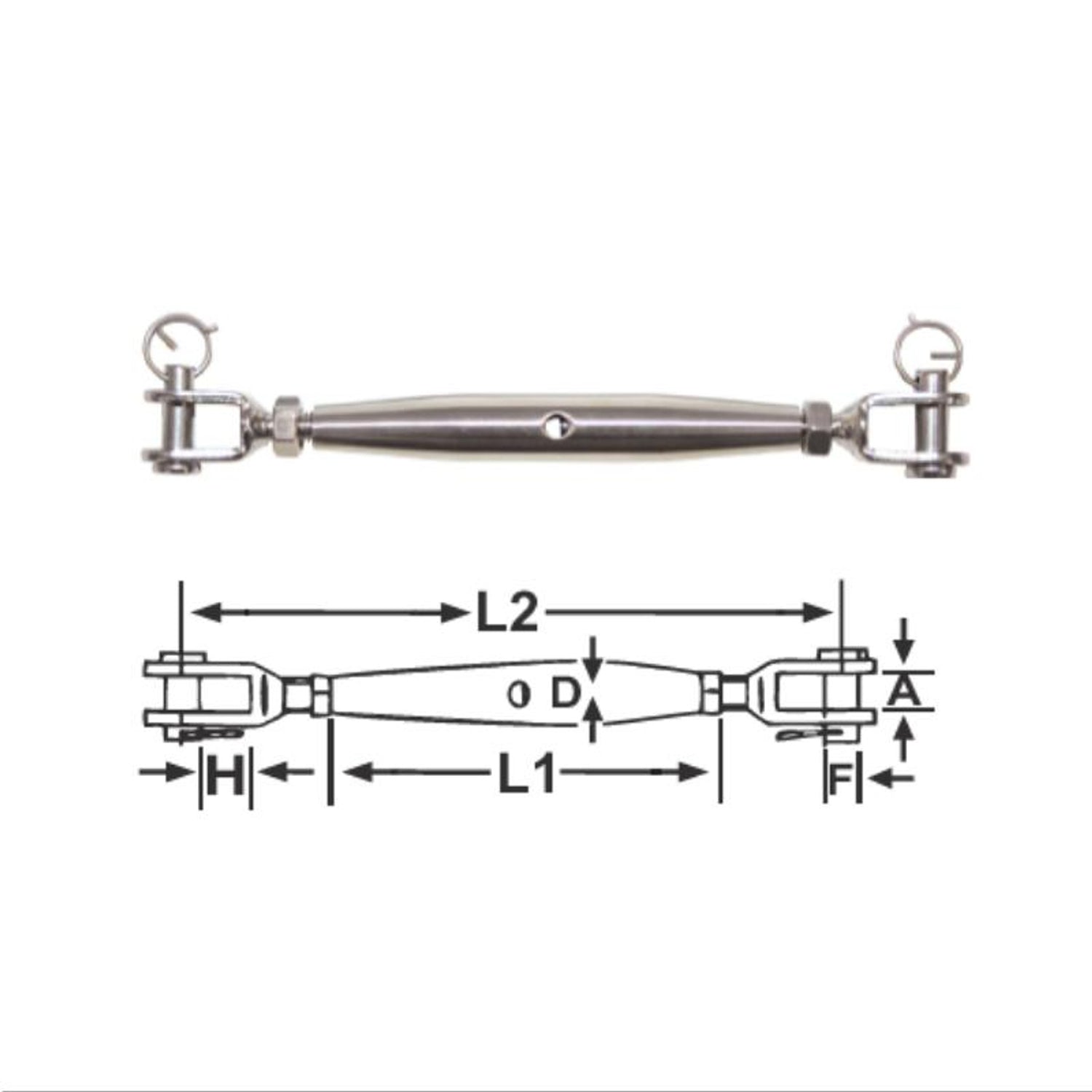 316 grade stainless steel jaw & jaw full body turnbuckles complete with lock nuts. Metric thread.