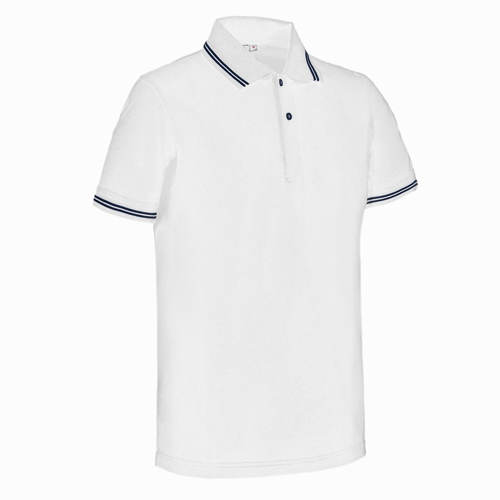 Men's SS piquet polo shirt, two buttons, rib collar with contrast stripes.