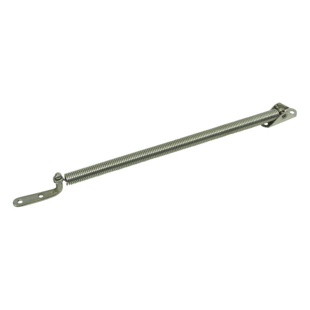 Stainless steel spring style hatch and window support. When hatch or window is in an open position the spring coil becomes a rigid support. To close, apply side pressure to the middle of the spring coil and the support will collapse to a closed position.