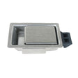 Attractive brushed stainless steel. Flush styling. Smooth push-to-close latching, pull paddle to open. Quick one screw mounting. Spring loaded paddle that won’t rattle. Made from 304 grade stainless steel, aluminium and polyester thermoplastic.