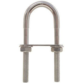 304 grade stainless steel "U" bolts with a stepped shaft giving a solid bearing surface for the bearing plate for added strength. All have 8mm thread and 10mm diameter material.