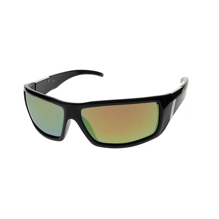 Nothing says active quite like a Black pair of Biker Wrap Sunglasses, and this pair is decorated with a Silver Bar on the arm to add a little bit of class. Available in Red Revo or Dark Smoke Polarized lenses.