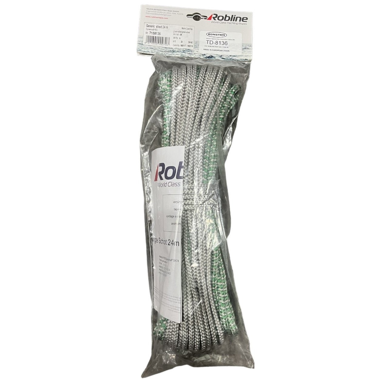 Robline Generic Tapered Sheet ,Green/Silver,6-9mm,20m is backordered and will ship as soon as it is back in stock.