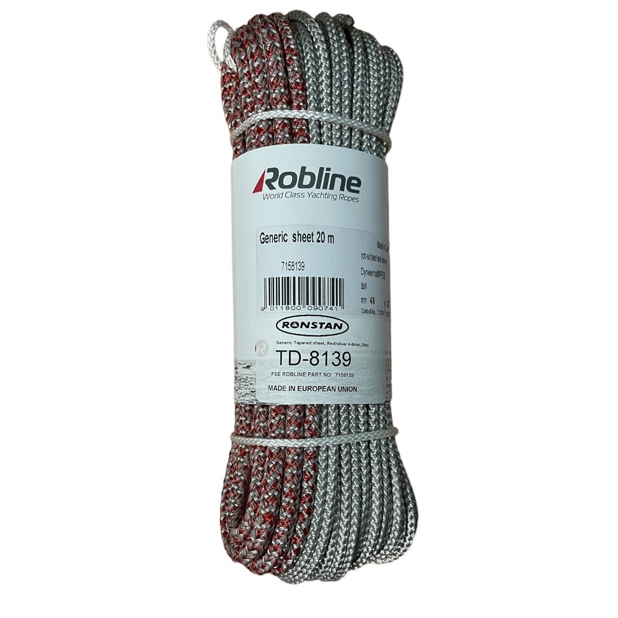 Robline Generic Tapered Sheet ,Red/Silver,4-6mm,20m